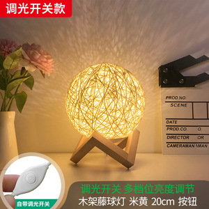 モダンシンプルなテーブルランプ寝室ヘッドランプ小さな夜ライトクリエイティブins少女ロマンチック装飾籐ボールライト