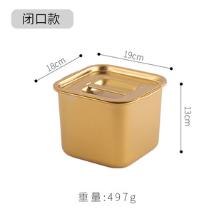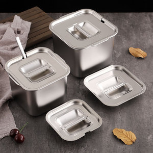 ステンレスの四角形のジャムのたらいの商用の金色の蓋の味の杯の調味料の箱の調味料の箱のソースの桶のミルクティーの小さい材料のたらい