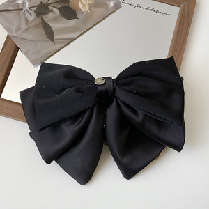 プリンセススタイルブラックリボンポニーテールクリップライト高級ゴールドドットダイヤモンドグリッパー頭飾り外出多用途ヘアピンクリップ