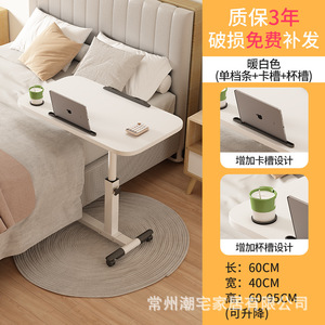ベッドサイドの机は移動可能です。パソコンの机はシンプルです。