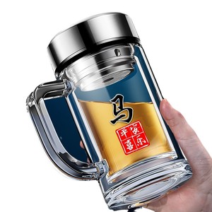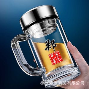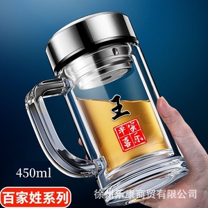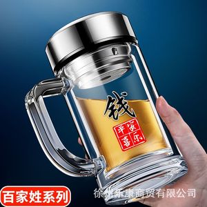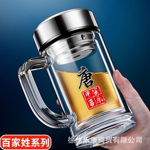 百家姓二重グラス男性家庭用コップ高級蓋付き茶水分離泡茶コップ事務用コップ