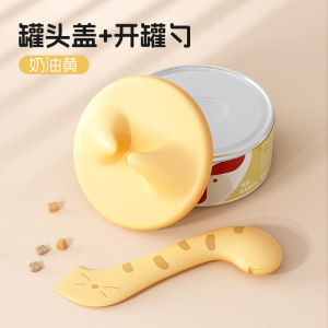 クリームイエロー【保存缶蓋+蓋開きスプーン】ペット飼育に実用