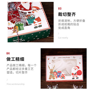 新商品の透明な窓の開けたクリスマスのプレゼントの箱はふたを開けてデザートのビスケットの包装箱のカラー印の卵のタルトのパンの白い紙の箱を覆います。