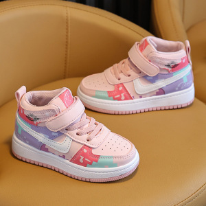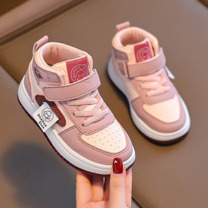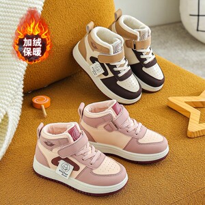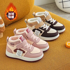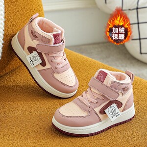 リトルイエローアヒル子供靴女の子靴ハイトップ子供スポーツシューズ 2025 秋と冬の新しい女の子スニーカープラスベルベット綿靴