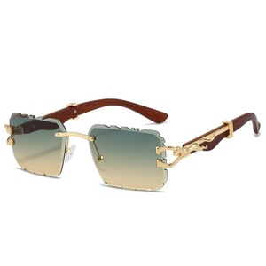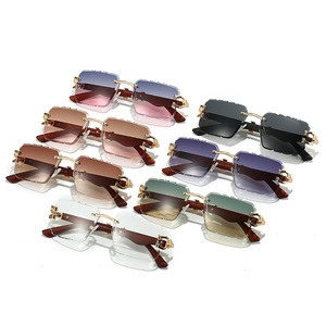 新品レディースフレームレスサングラス个性スクエアサングラスメンズ高级感オシャレクロスボーダーカットサングラス