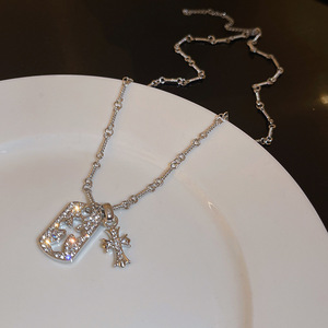 真の金の電気めっきの四角形の水晶の金の二重のネックレスの復古の気質のネットの赤い風の鎖の骨のチェーンの軽くて豪華な高級感のアクセサリ