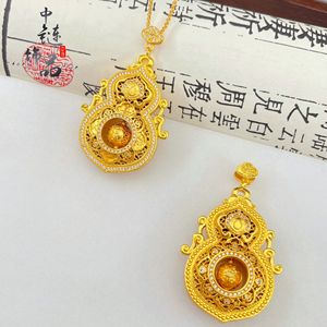 ゴールドストアと同じスタイルのサンドゴールドとダイヤモンドの人生の四美中空フィリグリー回転ひょうたんペンダント銅金メッキひょうたんペンダント
