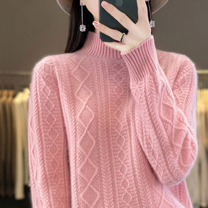 【一線の服】純色の半高襟の底のシャツの女性の秋冬の新型のジャカードの組み合わせのニットの女性のセーターのファッション
