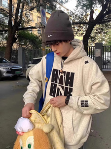 花の灰色の刺繍のフード付きの男性の秋冬のアメリカのレトロなファッションのブランドの高級感の重いポンドの青少年のコート
