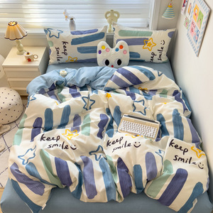 A類小清新純綿磨毛四点セットの二人布団カバーのシーツは純綿学生寮の三点セットを厚くします。