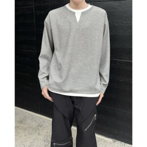 灰色の偽の2つの長袖のtシャツの男性の秋のアメリカのレトロな丸首の帽子のないパーカーのゆったりしたvネックの底のシャツの上着