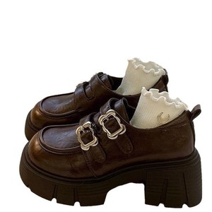 甘くてクールな女性用身長を伸ばす小さな革靴2025秋の新作厚底英国風ローファーとスカート