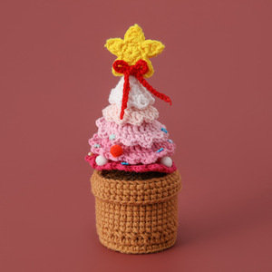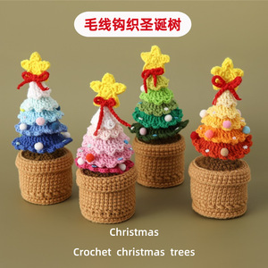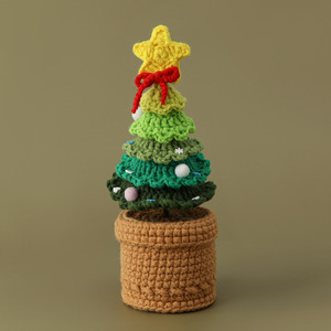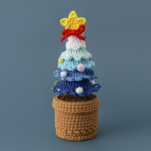 クリスマス5層毛糸鉢植え手作りニット雪菲毛糸鉤織クリスマスツリー宴会デスクトップクリエイティブ置物