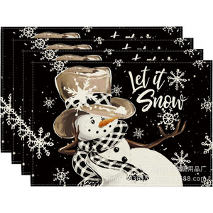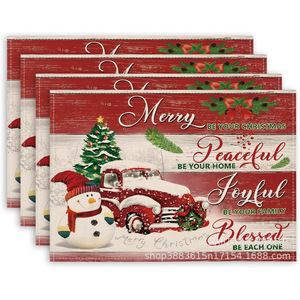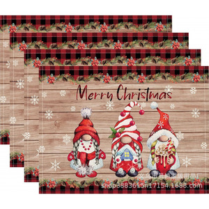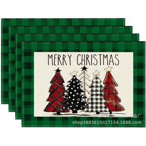 新品クリスマスプリントリネンプレースマットクロスボーダー祭りパーティー装飾防汚断熱テーブルマット
