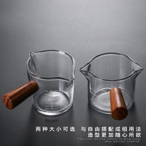 コーヒーミルクポット、イタリアンガラスミルクコーヒー、ミニシェアリング計量カップ、木製ハンドル、ダブルノズル、小さなミルクカップ、ガラスミルクジャグ