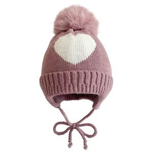 国境を越えたプラットフォームはアマゾンの愛のニット赤ちゃんの子供の毛球帽のお下げとベルベットの保温帽を提供しています