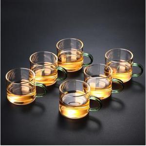 高ホウケイ酸ガラスは直火で加熱することができます小さなカップ透明ベルトハンドルセット高ホウケイ酸カラーハンドルティークリエイティブカップ
