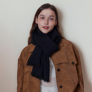 韓国の秋冬の柔らかいニットの毛糸のマフラーは暖かくて純色の高級感の毛の縁のウールの混紡のマフラーを合わせます。