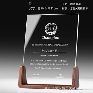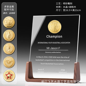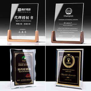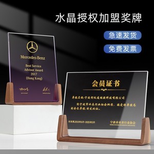 水晶授権牌実木授権書バッジ高級製作トロフィーメダル彫刻栄誉石版記念品