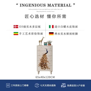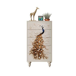 アメリカ式の軽い豪華な風の五斗のタンスの家庭用寝室の木のロッカーの現代の簡単な芸術の孔雀の彩色の絵の引き出しのタンス