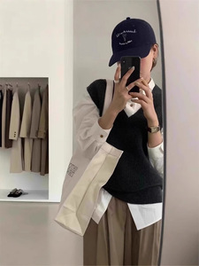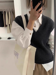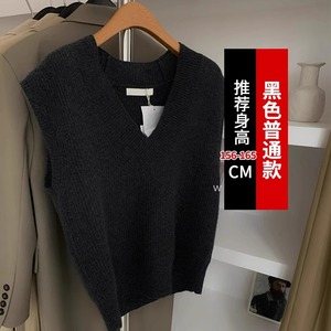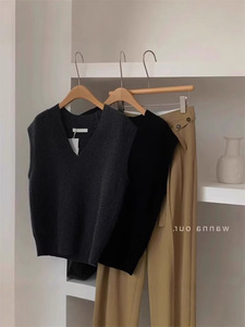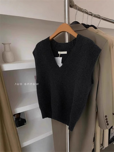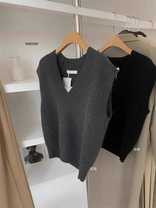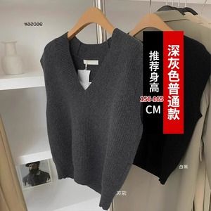 グレーvネックセーターベスト女性秋冬小柄重ね着ゆったりニットベストインナープルオーバーノースリーブトップス