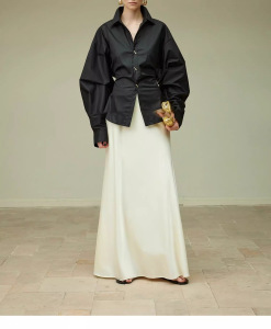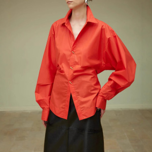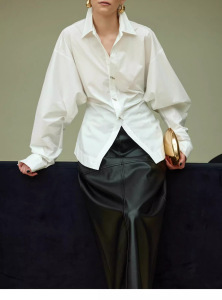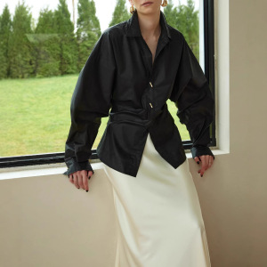 スポット春と秋のヘビーコーマコットンウエストトップデコンストラクトデザイン白シャツジャケット女性秋