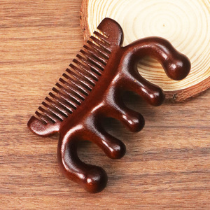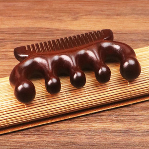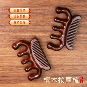 金糸檀マッサージ櫛頭部経絡櫛五本指檀木肩頚部ボールヘッド多機能マッサージ櫛二用櫛