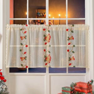 刺繍クリスマスカーテンベル刺繍レース遮光長方形美化装飾コーヒーカーテンクロスボーダーアマゾン