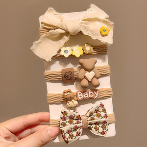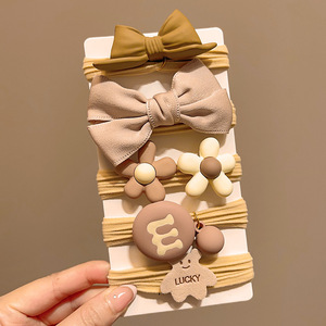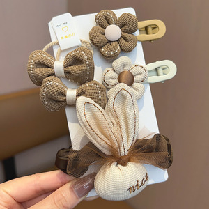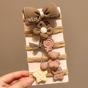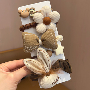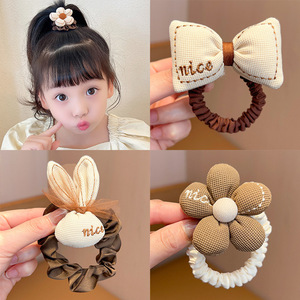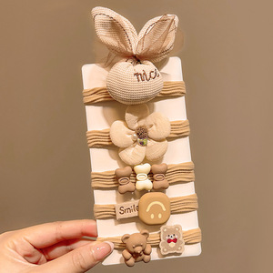 少女は髪の皮筋を刺して子供の頭ひもの気質の髪ひもの花の高弾力の乳のカレー色の女の子の髪輪のウサギ