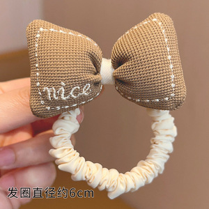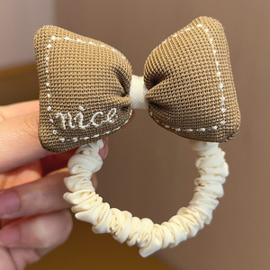 ブラウンレターリボンヘアゴムミックススタイル【3本入】
