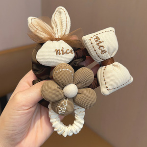 【売れ筋2点セット】茶花うさぎヘアゴム
