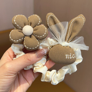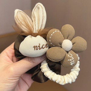 ミルクコーヒーうさぎの花のヘアゴム【2個入】