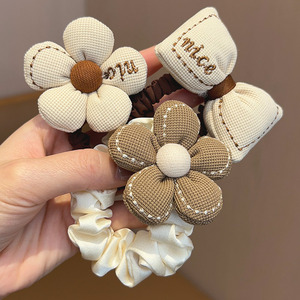 ミルクコーヒーフラワーヘアゴムミックススタイル【3本入】