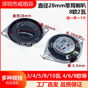 直径 28mm 耳付きスピーカー 8 オーム 2 ワット
