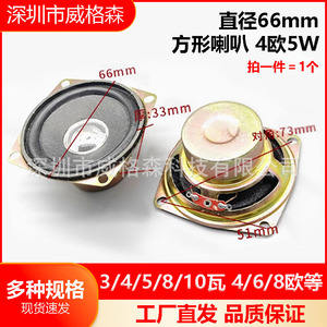 66mm角内部磁気8オーム5ワット