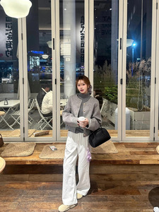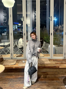 2025年初冬韓国風レトロ高級感小香風グレーショートジャケットとハイネックセーターのツーピースセット