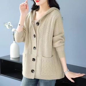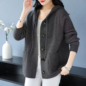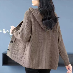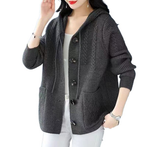 秋冬のお母さんのコートの女性のニットのカーディガンの中で老年のゆったりしている大きいサイズの百合のカジュアルな厚い新型の帽子の上着