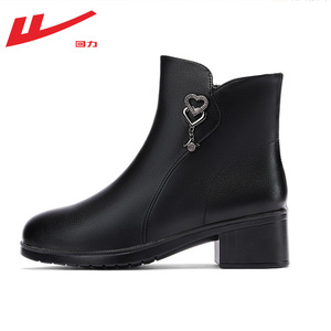 回力妈妈鞋子老人棉鞋女冬季加绒保暖皮鞋雪地靴中老年皮面短靴女