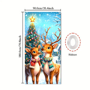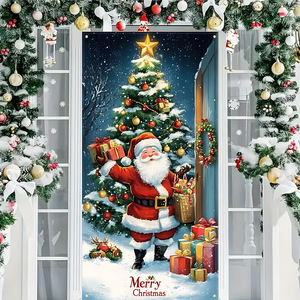 跨境圣诞节门盖节日派对装饰氛围背景布挂布外贸旗帜批发门帘挂布