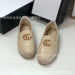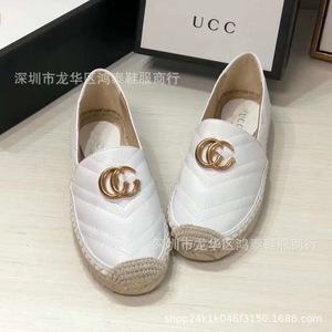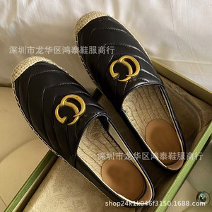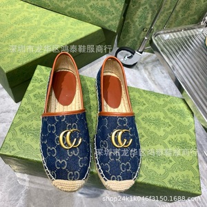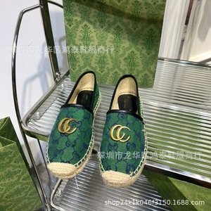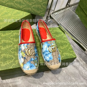 24新型G家刺繍プリント漁師靴2024年秋編みゴム底皮面浅口レジャー婦人靴