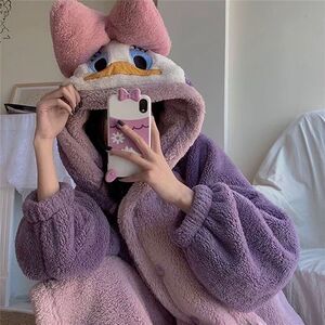 クロミパジャマの女性は冬に帽子をかぶって保温して、漫画の長いサンゴのベルベットの冬の寝衣の家の服を厚くします。