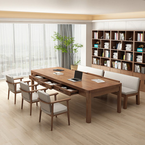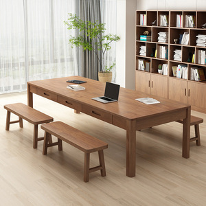 木の机の書斎の机は引き出しの家庭の仕事台の事務台の長いテーブルを持っています。