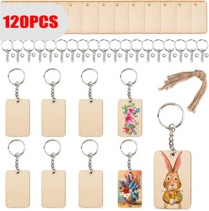 120 個セット (ウッドチップ 120 個 + キーホルダー 120 個 + 麻ロープ 120 個)