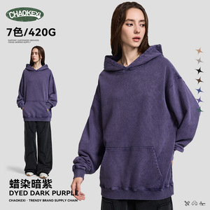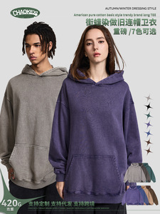 秋冬新作 ユース向け ハイストリート ヘビーウェイト420G ウォッシュド ワックス染め レトロ パーカー カジュアル スポーツ フード付きスウェットシャツ メンズ
