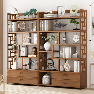 特価の厚い高級博古架の実木の中国式の多宝閣の本棚は物を置く棚の骨董品を仕切ります。
