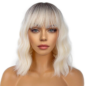 アマゾンの爆発的なクロスボーダーのかつらのカラーの短い巻き髪は前髪の水の波紋の短い巻き髪のwigのかつらの全頭カバーです。
