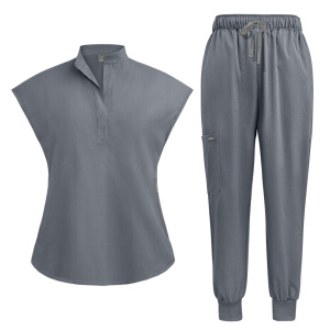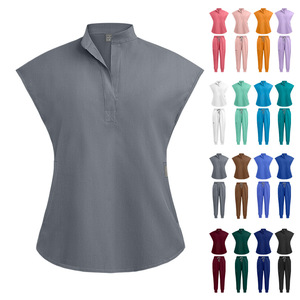 16色展開、スタンドカラー、バットスリーブの手洗い用白衣、美容院、歯科医、看護師用ユニフォーム、医療専用作業服セット