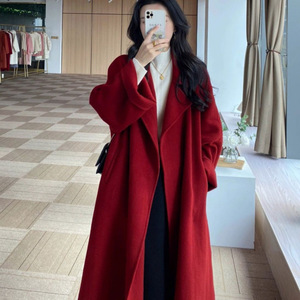 レッドのウールコート レディース ミドル丈 ウールジャケット 秋冬 2025 多用途 小柄な女性向けウールコート