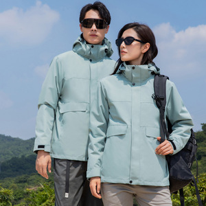 男女同モデル秋冬取り外し可能銀狐絨毛三合一突撃服アウトドア登山服コート作業服印字