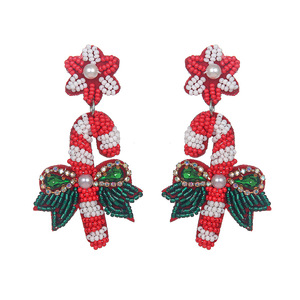 ピンクとグリーンのクリスマスツリーライスビーズイヤリング